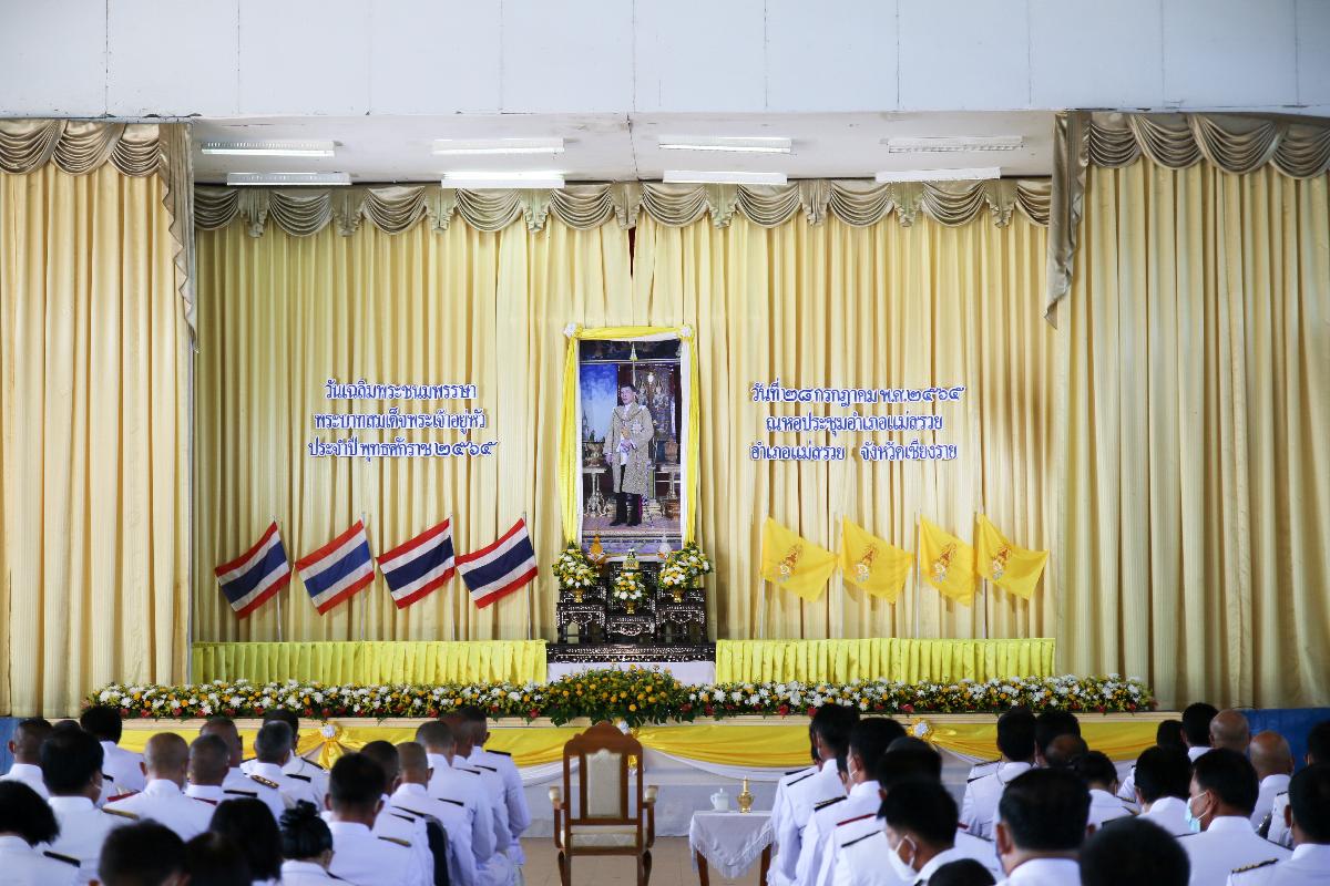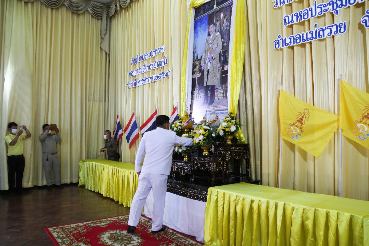 ณ หอประชุมอำเภอแม่สรวย จังหวัดเชียงราย โดยมี นายจรูญ สร้อยจิต นายอำเภอแม่สรวย เป็นประธานในพิธีทำบุญตักบาตรถวายเป็นพระราชกุศล และพิธีถวายสัตย์ปฏิญาณเพื่อเป็นข้าราชการที่ดีและพลังของแผ่นดิน ร่วมกับ ผู้กำกับการสถานีตำรวจ หัวหน้าส่วนราชการทุกส่วน หัวหน้าหน่วยงานรัฐวิสาหกิจทุกแห่ง นายกเทศมนตรีตำบล และนายกองค์การบริหารส่วนตำบลทุกแห่ง กำนันทุกตำบล ผู้ใหญ่บ้านทุกหมู่บ้าน ผู้ช่วยผู้ใหญ่บ้าน เจ้าหน้าที่ข้าราชการ และประชาชนทั่วไป ในอำเภอแม่สรวย เข้าร่วมพิธีดังกล่าว