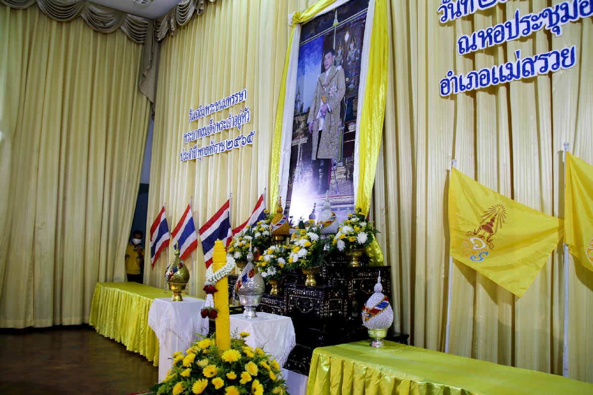 ณ หอประชุมอำเภอแม่สรวย จังหวัดเชียงราย โดยมี นายจรูญ สร้อยจิต นายอำเภอแม่สรวย เป็นประธานในพิธีถวายเครื่องราชสักการะและวางพานพุ่ม และพิธีจุดเทียนถวายพรชัยมงคล ร่วมกับ ผู้กำกับการสถานีตำรวจ หัวหน้าส่วนราชการทุกส่วน หัวหน้าหน่วยงานรัฐวิสาหกิจทุกแห่ง นายกเทศมนตรีตำบล และนายกองค์การบริหารส่วนตำบลทุกแห่ง กำนันทุกตำบล ผู้ใหญ่บ้านทุกหมู่บ้าน ผู้ช่วยผู้ใหญ่บ้าน เจ้าหน้าที่ข้าราชการ และประชาชนทั่วไป ในอำเภอแม่สรวย เข้าร่วมพิธีดังกล่าว
