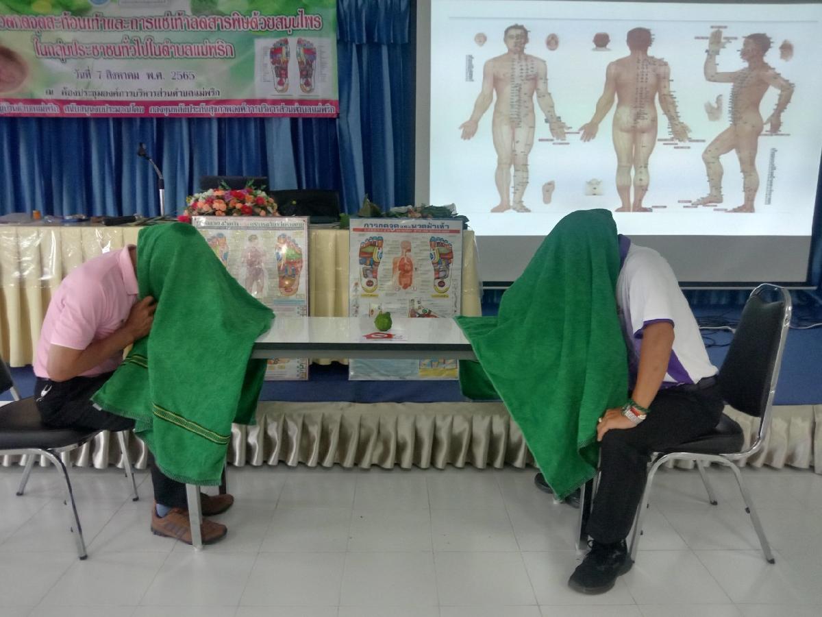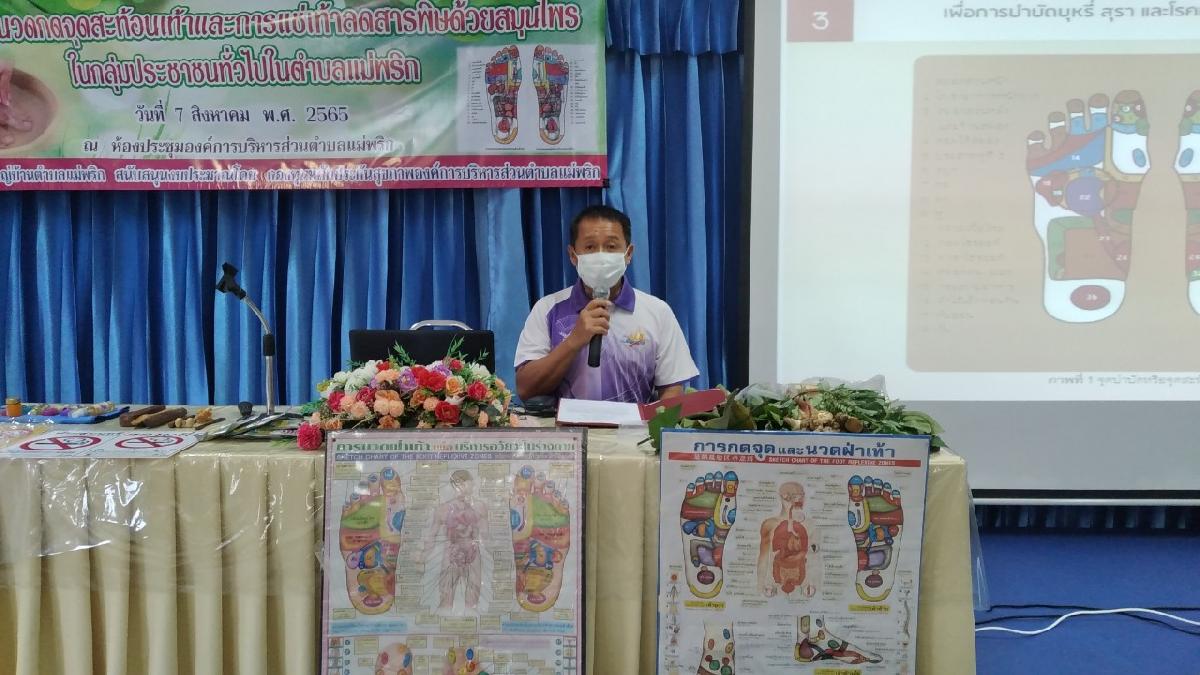 เมื่อวันที่ 07 สิงหาคม 2565 ชมรมกำนันผู้ใหญ่บ้านตำบลแม่พริก ร่วมด้วยสำนักงานหลักประกันสุขภาพแห่งชาติ และกองทุนหลักประกันสุขภาพองค์การบริหารส่วนตำบลแม่พริก ได้จัดทำโครงการอบรบการนวดกดจุดสะท้อนและการแช่เท้าลดสารพิษด้วยสมุนไพร ในกลุ่มประชาชนทั่วไปในตำบลแม่พริก ณ ห้องประชุมองค์การบริหารส่วนตำบลแม่พริก