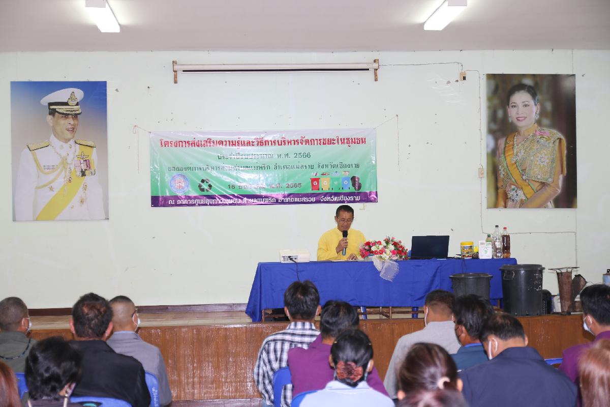 วันที่ 16 ธันวาคม 2565 เวลา 09.00 น. นายอุทัย ฟูวงค์ นายกองค์การบริหารส่วนตำบลแม่พริก ให้เกียรติเป็นประธานในโครงการส่งเสริมความรู้ และวิธีการบริหารจัดการขยะในชุมชน โดยมีผู้นำ สมาชิก อบต. และอสม. ของตำบลแม่พริก เข้าร่วมอบรบ เพื่อให้เป็นตามการขับเคลื่อนโครงการถังขยะเปียก ลดโลกร้อนของ อปท. ให้ครบทุกครัวเรือน 100 % ตามนโยบายของกระทรวงมหาดไทยโดยกรมส่งเสริมการปกครองท้องถิ่น ณ อาคารสุขภาวะ ตำบลแม่พริก