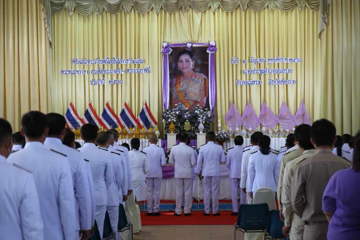วันที่ 3 มิถุนายน 2566 นำโดย นายอุดม ปกป้องบวรกุล นายอำเภอแม่สรวย หัวหน้าส่วนราชการ หัวหน้าหน่วยงานรัฐวิสาหกิจ นายกองค์การบริหารส่วนท้องถิ่น ชมรมกำนันผู้ใหญ่บ้าน อำเภอแม่สรวย และองค์การบริหารส่วนตำบลแม่พริก นำโดยนายอุทัย ฟูวงศ์ นายกองค์การบริหารส่วนตำบลแม่พริก พร้อมด้วยเจ้าหน้าที่ และพนักงาน เข้าร่วมพิธีเฉลิมพระเกียรติเนื่องในโอกาศวันเฉลิมพระชนมพรรษา สมเด็จพระนางเจ้าสุทิดา พัชรสุธาพิมลลักษณ พระบรมราชินี 3 มิถุนายน 2566 โดยมีพิธีทำบุญตักบาตรรถวายเป็นพระราชกุศล ถวายเครื่องราชสักการะและวางพานพุ่ม และพิธีจุดเทียนถวายพระพรชัยมงคล ณ หอประชุมอำเภอแม่สรวย จังหวัดเชียงราย