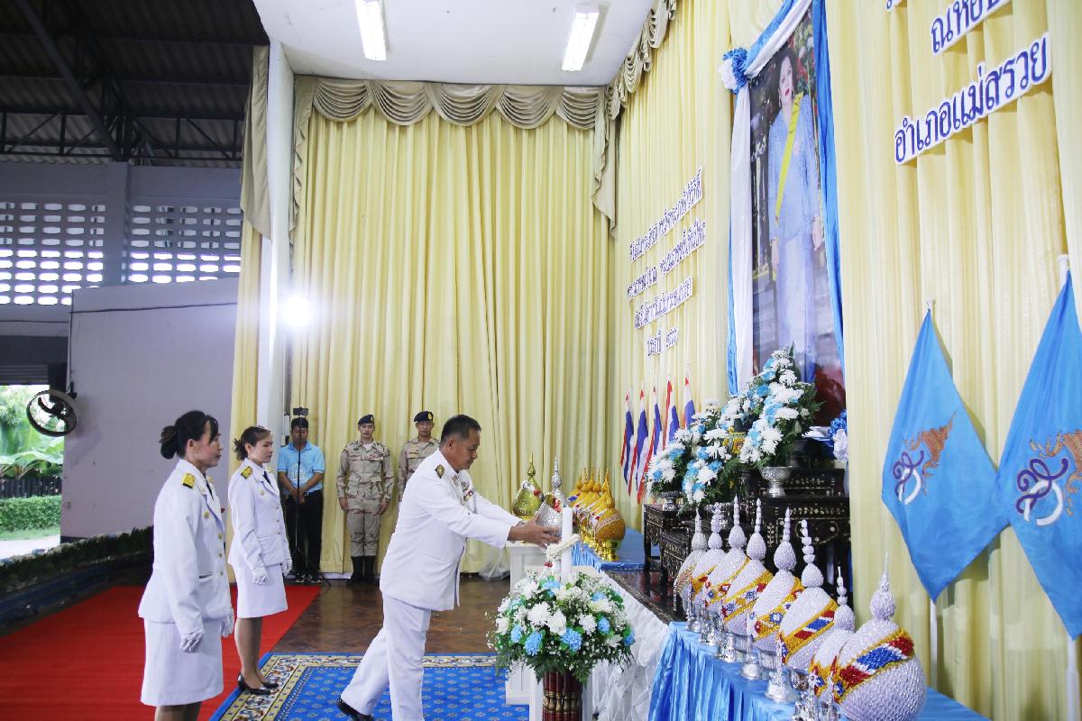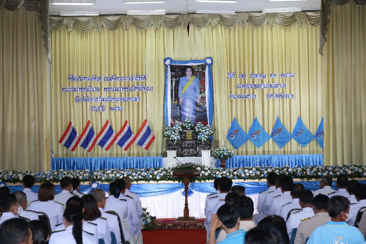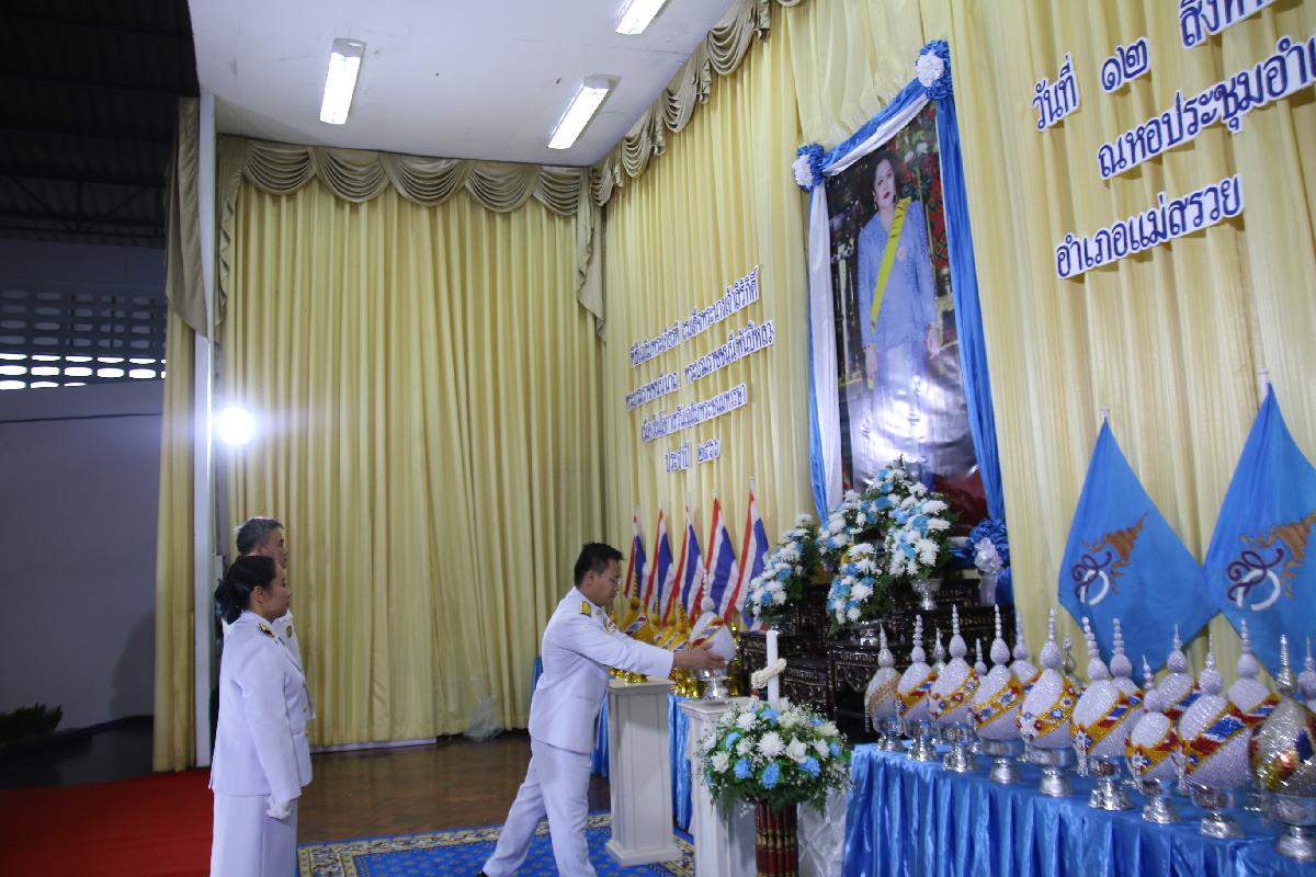 วันที่ ๑๒ สิงหาคม ๒๕๖๖ นายอุดม ปกป้องบวรกุล นายอำเภอแม่สรวย ให้เกียรติเป็นประธานในพิธีถวายเครื่องราชสักการะและวางพานพุ่ม และพิธีจุดเทียนถวายพรชัยมงคลร่วมกับ ผู้กำกับการสถานีตำรวจ หัวหน้าส่วนราชการทุกส่วน หัวหน้าหน่วยงานรัฐวิสาหกิจทุกแห่ง นายกเทศมนตรีตำบล และนายกองค์การบริหารส่วนตำบลทุกแห่ง กำนันทุกตำบล ผู้ใหญ่บ้านทุกหมู่บ้าน ผู้ช่วยผู้ใหญ่บ้าน เจ้าหน้าที่ข้าราชการ และประชาชนทั่วไป ในอำเภอแม่สรวย เข้าร่วมพิธีฯ ณ หอประชุมอำเภอแม่สรวย จังหวัดเชียงราย