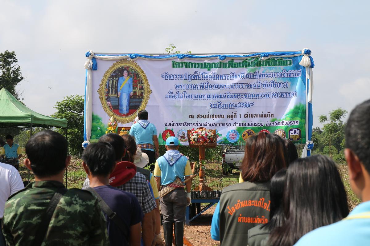 วันที่ 16 สิงหาคม 2566 นายธนพนธ์ จันทร์วรรณ กำนันตำบลแม่พริก ให้เกียรติเป็นประธานเปิดโครงการปลูกป่าเพื่อเพิ่มพื้นที่สีเขียว “กิจกรรมปลูกต้นไม้เฉลิมพระเกียรติ สมเด็จพระนางเจ้าสิริกิติ์ พระบรมราชินีนาถ พระบรมราชชนนีพันปีหลวง เนื่องในโอกาสมหามงคลเฉลิมพระชนมพรรษา 91 พรรษา 12 สิงหาคม 2566” ร่วมกับนายอุทัย ฟูวงศ์ นายกองค์การบริหารส่วนตำบลแม่พริก พร้อมทั้งรองนายก สมาชิกสภา ผู้ใหญ่บ้าน ผู่้ช่วยผู้ใหญ่บ้าน และเจ้าหน้าที่ เข้าร่วมกิจกรรม เพื่อเพิ่มพื้นที่สีเขียวให้เกิดการพัฒนา ฟื้นฟู พื้นที่ป่าให้กลับมามีความอุดมสมบูรณ์ ลดการเกิดปัญหาภัยแล้ง ปัญหาน้ำท่วม และดินโคลนถล่ม โดยการปลูกต้นไม้ทดแทนและเพิ่มเติม เพื่อปรับปรุงภูมิทัศน์และเพิ่มพื้นที่สีเขียว เพิ่มพื้นที่ป่าชุมชนตำบลแม่พริก เพื่อสร้างจิตสำนึกและส่งเสริมการมีส่วนร่วมของพนักงานองค์การบริหารส่วนตำบลแม่พริก ให้ตระหนักถึงความสำคัญของการดูแล รักษา และฟื้นฟูทรัพยากรป่าไม้และสิ่งแวดล้อม และเพื่อเฉลิมพระเกียรติสมเด็จพระนางเจ้าสิริกิติ์ พระบรมราชินีนาถ พระบรมราชชนนีพันปีหลวง ณ สวนป่าชุมชน หมู่ที่ 1 ตำบลแม่พริก