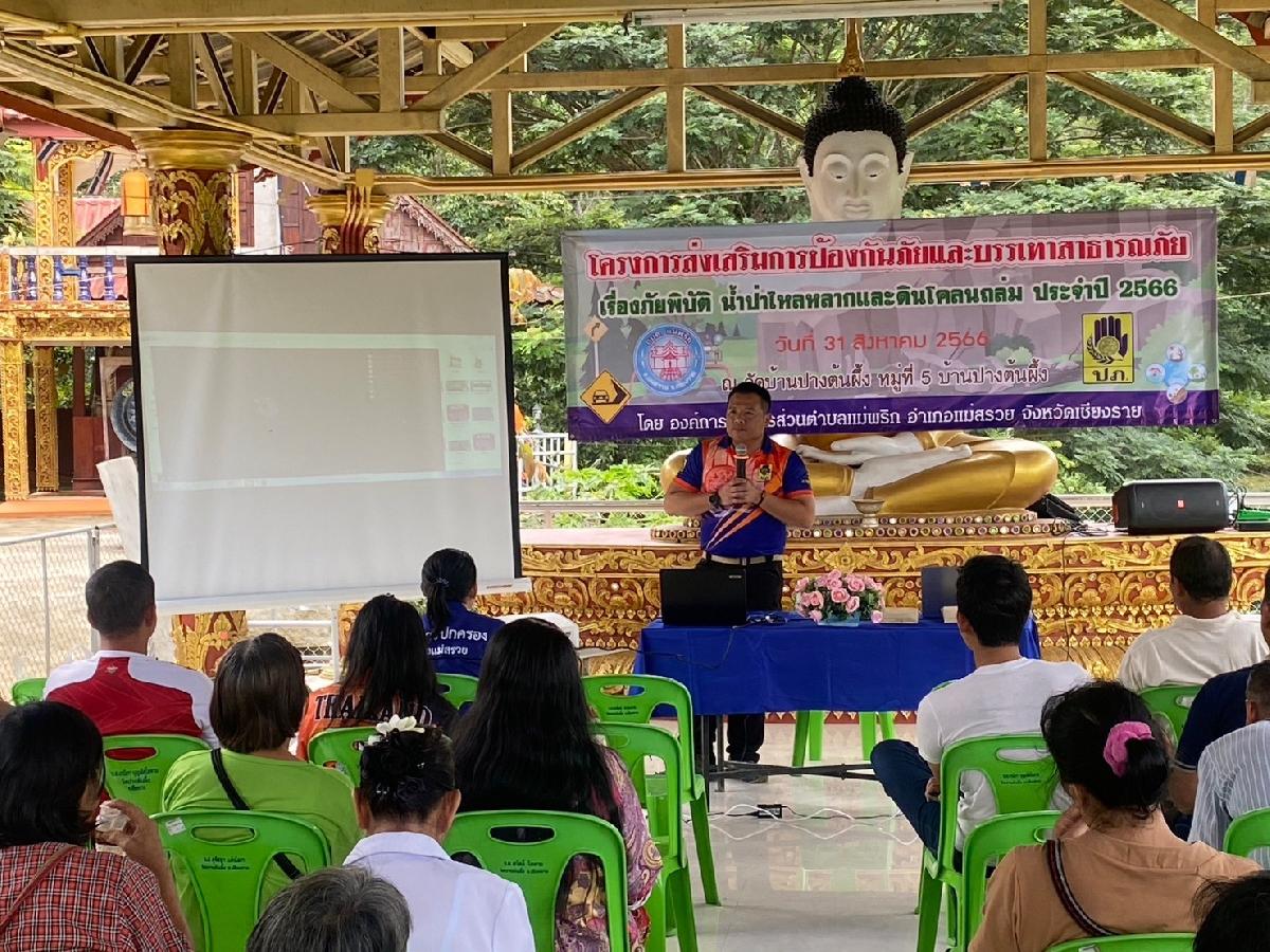 วันที่ 31 สิงหาคม 2566 นายอุทัย ฟูวงค์ นายกองค์การบริหารส่วนตำบลแม่พริก เป็นประธานเปิดโครงการส่งเสริมการป้องกันภัยและบรรเทาสาธารณภัย เรื่องภัยพิบัติ น้ำป่าไหลหลากและดินโคลนถล่ม ประจำปี พ.ศ. 2566 เพื่อเป็นการเตรียมความพร้อมรับมือถัยพิบัติ น้ำป่าไหลหลากและดินโคลนถล่ม ในพื้นที่เสี่ยงภัย และเป็นการส่งเสริมให้ความรู้กับประชาชน สามารถช่วยเหลือตัวเองให้รอดพ้นจากภัยที่ไม่สามารถคาดการณ์ไว้ล่วงหน้าได้ และเพื่อลดความสูญเสีย ทั้งชีวิตและทรัพย์สิน ณ วัดปางต้นผึ้ง หมุ่ที่ 5 ตำบลแม่พริก อำเภอแม่สรวย จังหวัดเชียงราย