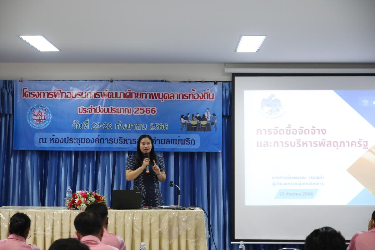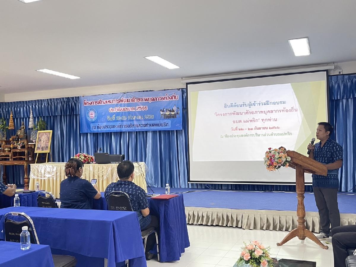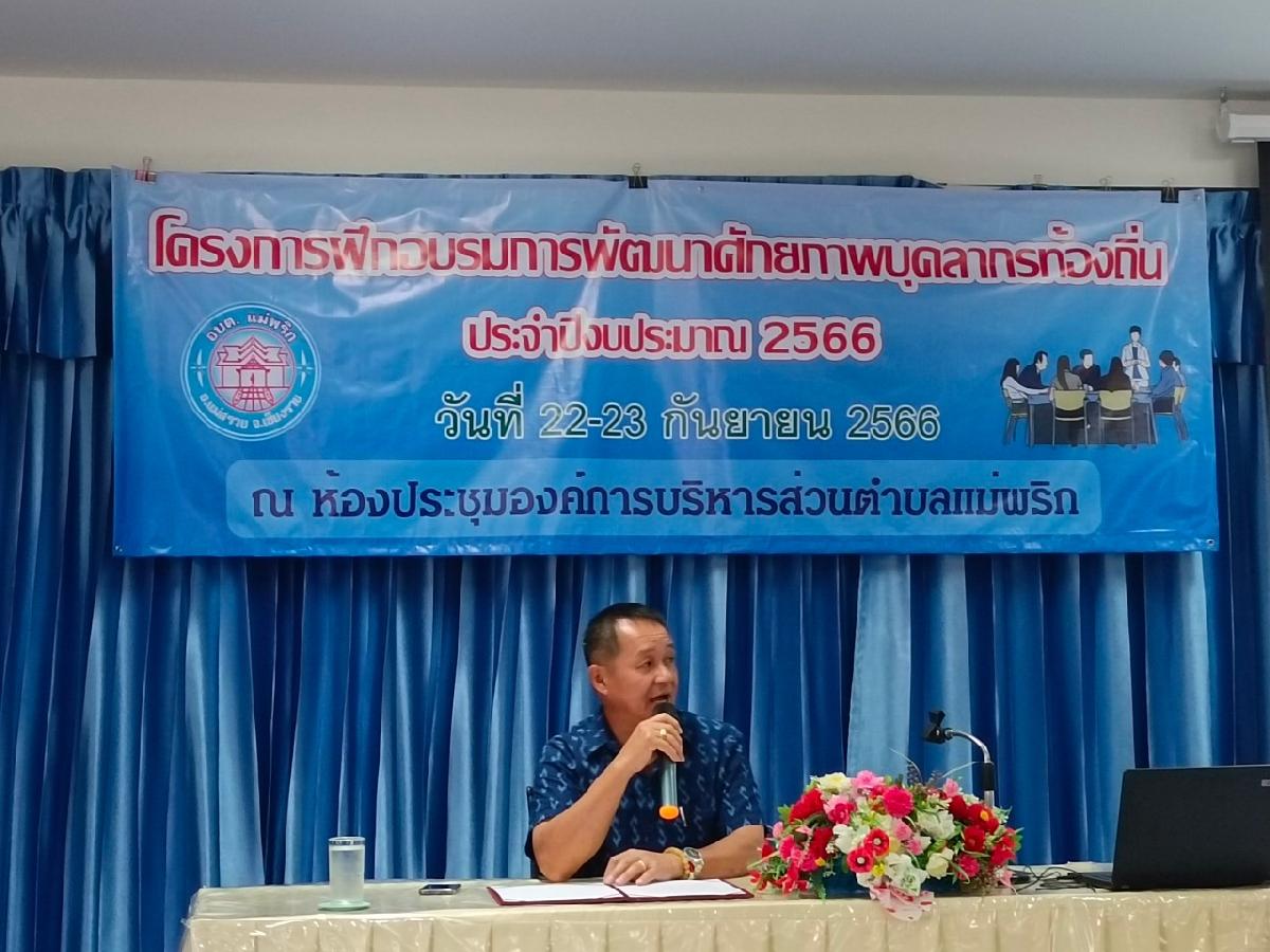 องค์การบริหารส่วนตำบลแม่พริก จัดโครงการฝึกอบรมการพัฒนาศักยภาพบุคลากรท้องถิ่น ประจำปีงบประมาณ 2566 เพื่อเป็นการพัฒนาเสริมสร้างทักษะ สมรรถนะแก่ผู้บริหารท้องถิ่น คณะผู้บริหารฯ ส.อบต และพนักงานส่วนตำบล พนักงานจ้างฯ ในระหว่างวันที่ 22-23 กันยายน 2566 โดยได้รับเกียรติจากวิทยากรผู้ทรงคุณวุฒิ คุณผ่องพรรณ วรรณคำ นักวิชาการคลังชำนาญการพิเศษ ผู้อำนวยการกลุ่มงานวิชาการ และคุณสุวรรณีย์ ฉลองวสุธันย์ นักส่งเสริมการปกครองท้องถิ่นชำนาญการ ท้องถิ่นอำเภอแม่สรวย ร่วมการฝึกอบรมฯลฯ