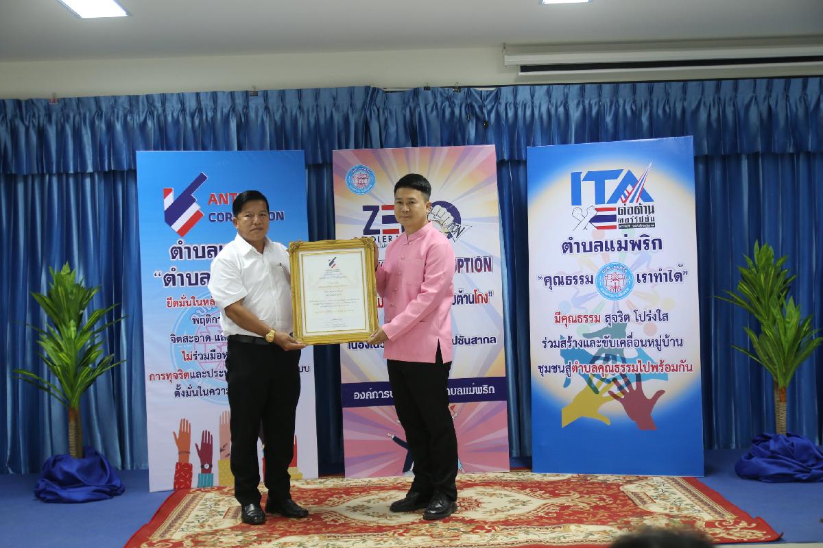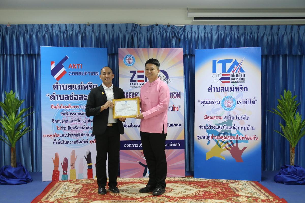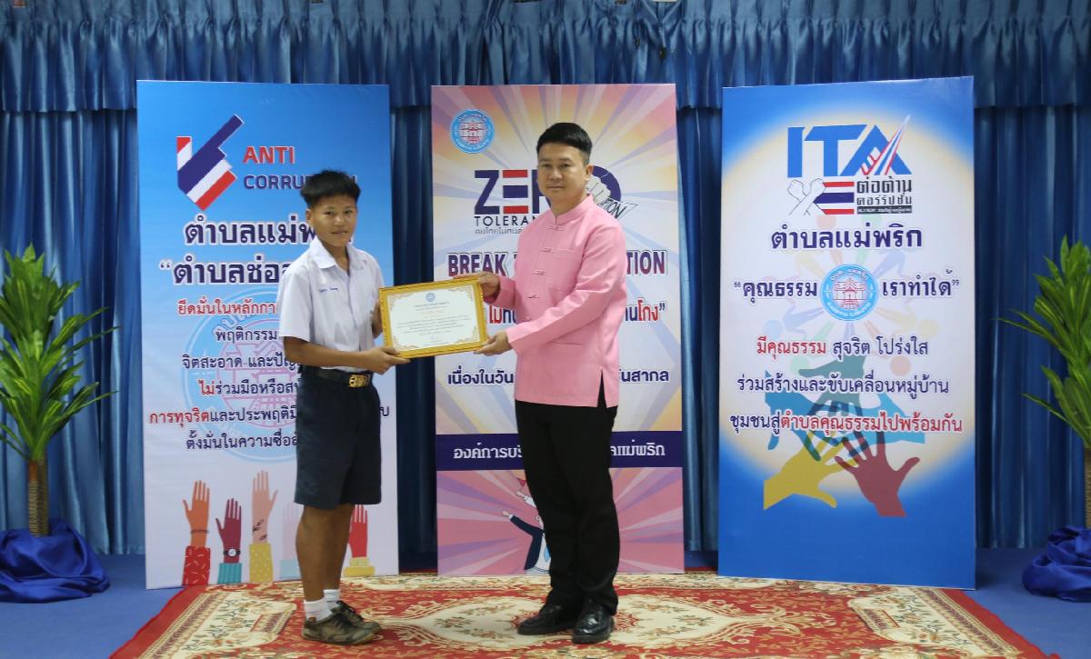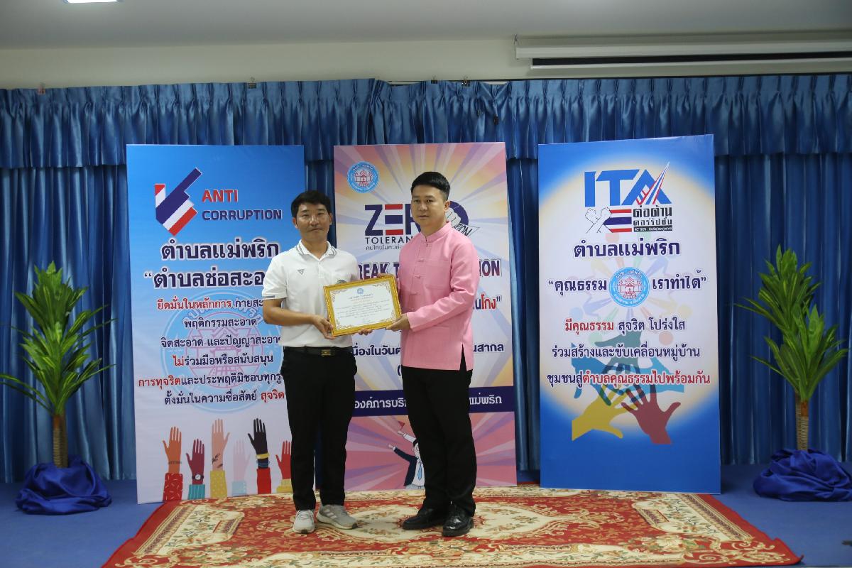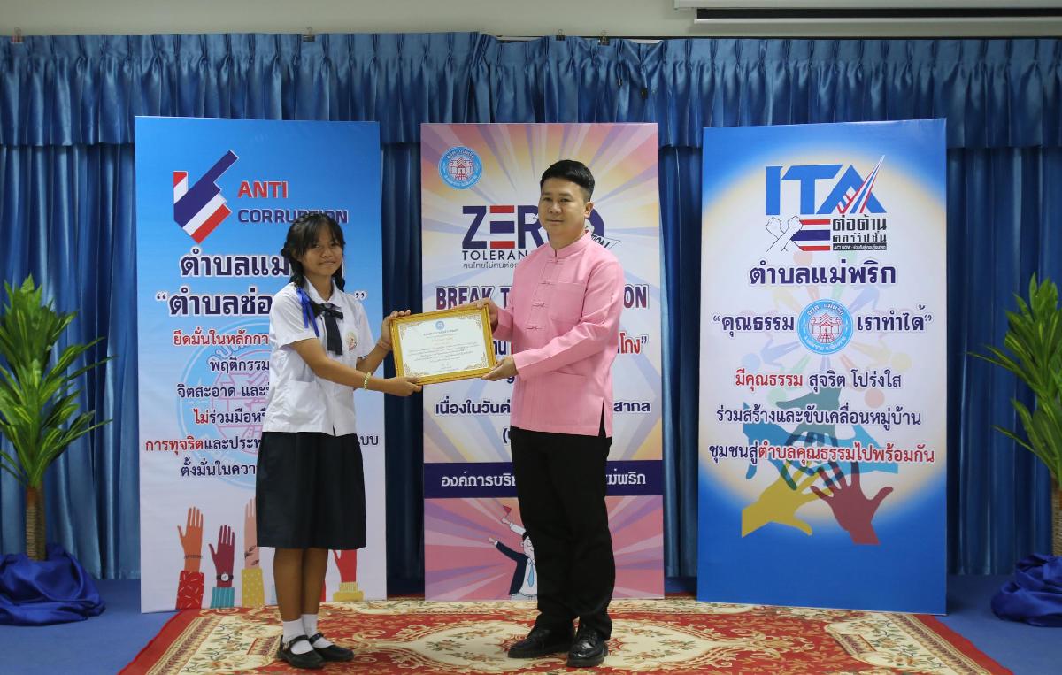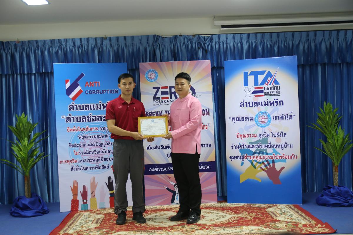 วันที่ 7 ธันวาคม 2566 องค์การบริหารส่วนตำบลแม่พริก ได้จัดโครงการเสริมสร้างค่านิยมต่อต้านการทุจริต : วันต่อต้านคอร์รัปชั่นสากล (ประเทศไทย) โดย นายกิติคุณ ดิศรณ์กุลสิริ ปลัดอำเภอ รักษาราชการแทน นายอำเภอแม่สรวย ให้เกียรติ เป็นประธาน และให้เกียรติมอบเกียรติบัตร ให้แก่เยาวชน “เป็นเยาวชนดีเด่น ด้านคุณธรรม จริยธรรม ประจำปี ๒๕๖๖ “ และ องค์กร “เป็นองค์กรดีเด่น ด้านการสนับสนุน ส่งเสริมและให้ความร่วมมือการป้องกันการทุจริตคอรัปชั่น ประจำปี ๒๕๖๖” ตามโครงการเสริมสร้างค่านิยมต่อต้านการทุจริต : วันต่อต้านคอร์รัปชั่นสากล (ประเทศไทย) ณ ห้องประชุมองค์การบริหารส่วนตำบลแม่พริก