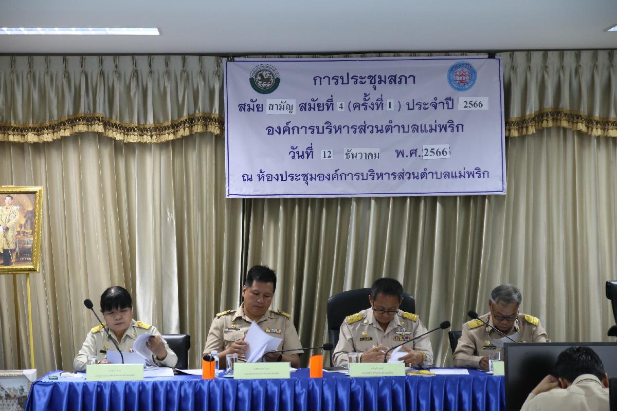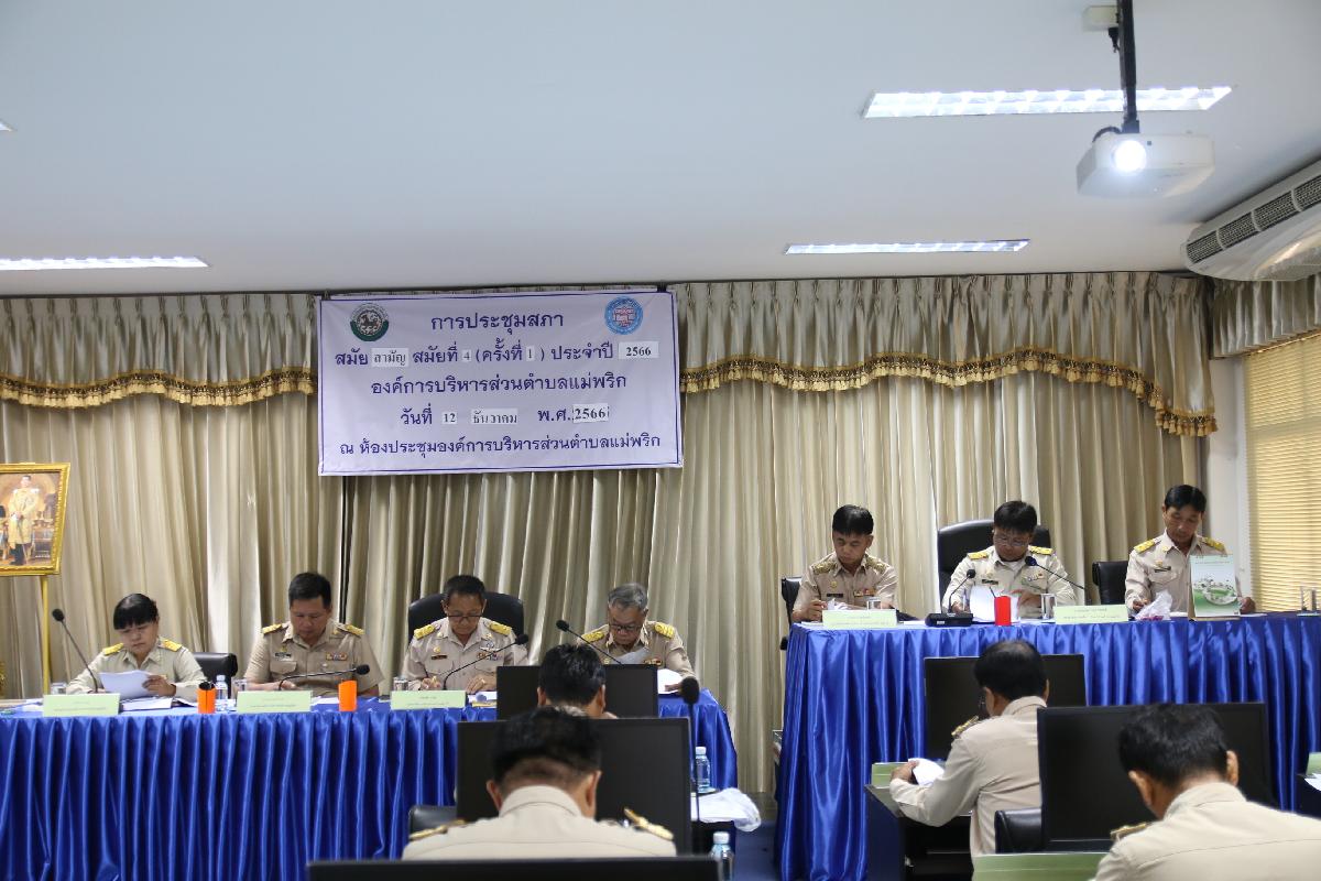 วันที่ 12 ธันวาคม 2566 เวลา 09.30 น. นำโดย ประธานสภา องค์การบริหารส่วนตำบลพริก รองประธานสภา สมาชิกสภา ร่วมด้วยนายกองค์การบริหารส่วนตำบลแม่พริก รองนายก เลขานุการ รองปลัด หัวหน้าส่วนราชการ รวมถึงเจ้าหน้าที่ ได้จัดการประชุมสภา สมัยสามัญ สมัยที่ 4 ครั้งที่ 1 ประจำปี 2566 เรื่อง การพิจารณาใช้จ่ายเงินสะสม ขออนุมัติโอนตั้งจ่ายรายการใหม่ ประจำปีงบประมาณ พ.ศ. 2567 และ รายงานผลการปฏิบัติงานตามนโยบายนายกองค์การบริหารส่วนตำบลแม่พริก