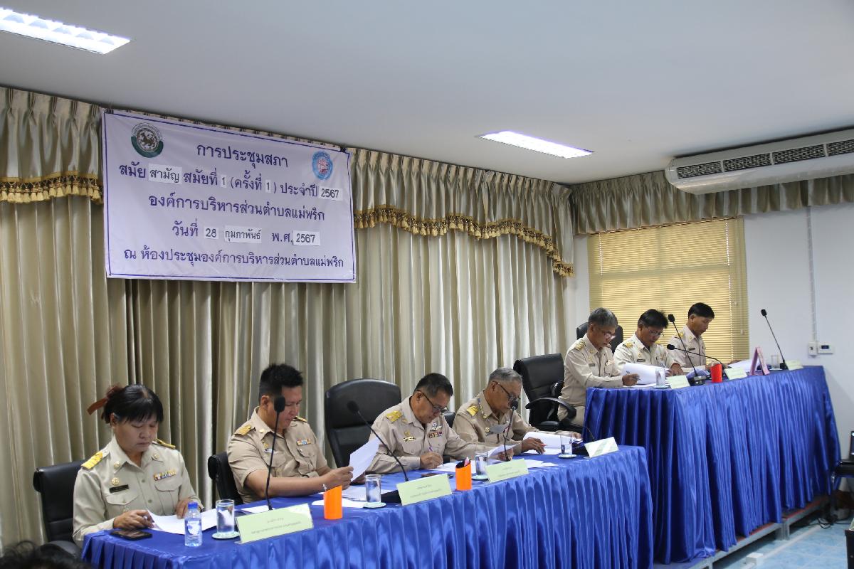 วันที่ 28 กุมภาพันธ์ 2567 เวลา 09.30 น. นำโดย ประธานสภา องค์การบริหารส่วนตำบลพริก รองประธานสภา สมาชิกสภา ร่วมด้วยนายกองค์การบริหารส่วนตำบลแม่พริก รองนายก เลขานุการ รองปลัด หัวหน้าส่วนราชการ รวมถึงเจ้าหน้าที่ ได้จัดการประชุมสภา สมัยสามัญ สมัยที่ 1 ครั้งที่ 1 ประจำปี 2567 เรื่อง การกำหนดจำนวนสมัยประชุมสมัยสามัญประจำปี ระยะเวลาและวันเริ่มต้นสมัยประชุมสามัญประจำปี 2567 วันเริ่มสมัยประชุมสามัญประจำปีของปีถัดไปและระยะเวลาของสมันประชุมสมัยสามัญประจำปี เรื่องขอความเห็นชอบถอนสภาพพื้นที่ เรื่องพิจารณายกเลิกการอนุมัติใช้จ่ายเงินสะสมเพื่อจัดซื้อรถบรรทุก (ดีเซล) แบบกระบะเทท้าย เรื่องพิจารณาขออนุมัติใช้จ่ายเงินสะสมเพื่อจัดซื้อรถบรรทุก (ดีเซล) แบบกระบะเทท้าย และเรื่องการพิจารณาให้ความเห็นชอบร่างข้อบัญญัติองค์การบริหารส่วนตำบลแม่พริก เรื่อง การติดตั้งบ่อดักไขมันบำบัดน้ำเสียในอาคาร พ.ศ. 2566 ณ ห้องประชุมสภาองค์การบริหารส่วนตำบลแม่พริก