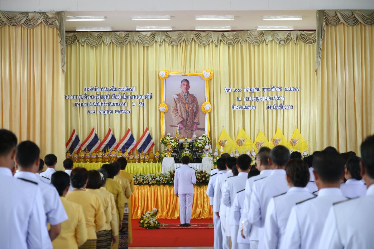 วันอาทิตย์ที่ 28 กรกฎาคม พ.ศ. 2567 อำเภอแม่สรวย จัดกิจกรรมเฉลิมพระเกียรติพระบาทสมเด็จพระเจ้าอยู่หัว เนื่องในโอกาสพระราชพิธีมหามงคลเฉลิมพระชนมพรรษา 6 รอบ 28 กรกฎาคม 2567 โดยมี นายปฤษฎางค์ สามัคคีนิชย์ นายอำเภอแม่สรวย เป็นประธานในพิธีฯ พร้อมด้วย นายกกิ่งกาดอำเภอแม่สรวย/ประธานชมรมแม่บ้านมหาดไทยอำเภอแม่สรวย หัวหน้าส่วนราชการทุกส่วน หัวหน้าหน่วยงานรัฐวิสาหกิจทุกแห่ง นายกเทศมนตรีตำบล และนายกองค์การบริหารส่วนตำบลทุกแห่ง ข้าราชการ พนักงานราชการ กำนัน ผู้ใหญ่บ้าน รวมถึงและประชาชนทั่วไป ในอำเภอแม่สรวย เข้าร่วมกิจกรรมเฉลิมพระเกียรติพระบาทสมเด็จพระเจ้าอยู่หัว เนื่องในโอกาสพระราชพิธีมหามงคลเฉลิมพระชนมพรรษา 6 รอบ 28 กรกฎาคม 2567 โดยมีพิธีทำบุญตักบาตรถวายเป็นพระราชกุศล พิธีถวายสัตย์ปฏิญาณเพื่อเป็นข้าราชการที่ดีและพลังของแผ่นดิน และพิธีถวายเครื่องราชสักการะและวางพานพุ่ม และพิธีจุดเทียนถวายพระพรชัยมงคล ณ หอประชุมอำเภอแม่สรวย จังหวัดเชียงราย