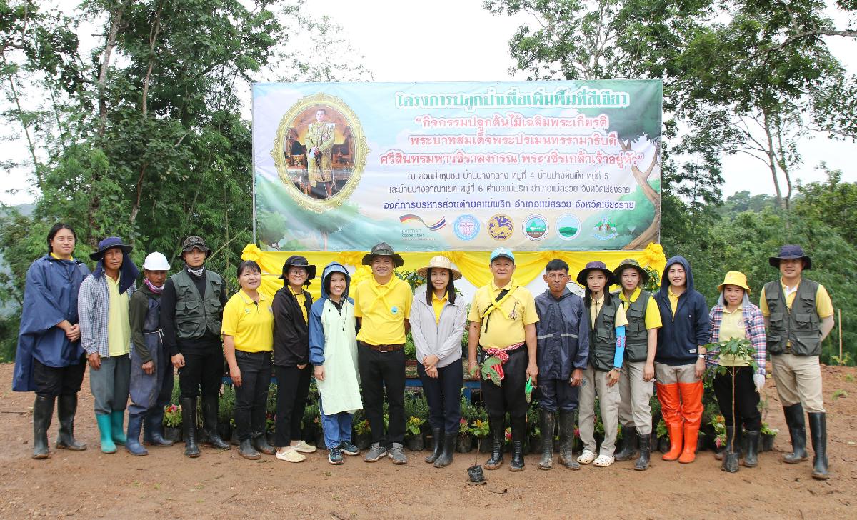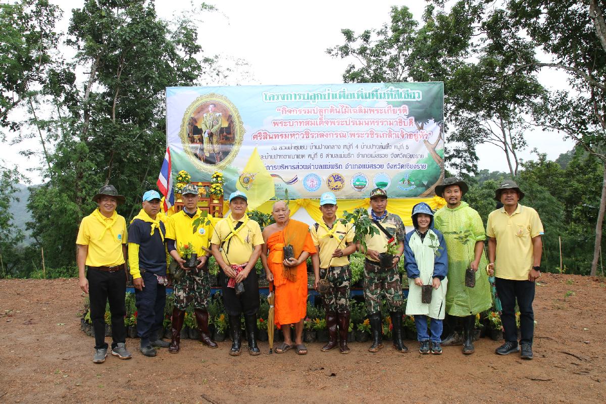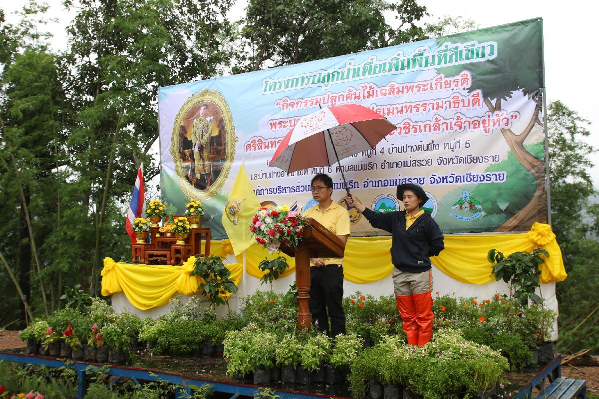 วันพุธที่ 31 กรกฎาคม พ.ศ. 2567 เวลา 09.30 น. นายปฤษฎางค์ สามัคคีนิชย์ นายอำเภอแม่สรวย ประธานในพิธีเปิดโครงการปลูกป่าเพื่อเพิ่มพื้นที่สีเขียว “กิจกรรมปลูกต้นไม้ เฉลิมพระเกียรติพระบาทสมเด็จพระเจ้าอยู่หัว" ร่วมกับนายอุทัย ฟูวงศ์ นายกองค์การบริหารส่วนตำบลแม่พริก นายนพพร ประทุมเหง่า หัวหน้าอุทยานแห่งชาติดอยหลวง นายนิมิตร ดวงปินตา ศูนย์วิจัยข้าวเชียงราย นางสาวศิวพร แก้วชุ่มชื่น องค์กรความร่วมมือระหว่างประเทศของเยอรมัน (GIZ) นายสุทัศน์ บุญเป็ง สถาบันวิจัยและพัฒนาพื้นที่สูง พร้อมทั้งรองนายก สมาชิกสภา ผู้ใหญ่บ้าน ผู่้ช่วยผู้ใหญ่บ้าน และเจ้าหน้าที่ เข้าร่วมกิจกรรม เพื่อเพิ่มพื้นที่สีเขียวให้เกิดการพัฒนา ฟื้นฟู พื้นที่ป่าให้กลับมามีความอุดมสมบูรณ์ ลดการเกิดปัญหาภัยแล้ง ปัญหาน้ำท่วม และดินโคลนถล่ม โดยการปลูกต้นไม้ทดแทนและเพิ่มเติม เพื่อปรับปรุงภูมิทัศน์และเพิ่มพื้นที่สีเขียว เพิ่มพื้นที่ป่าชุมชนตำบลแม่พริก ณ สวนป่าชุมชน บ้านปางกลาง บ้านปางต้นผึ้ง และบ้านปางอาณาเขต ตำบลแม่พริก อำเภอแม่สรวย จังหวัดเชียงราย