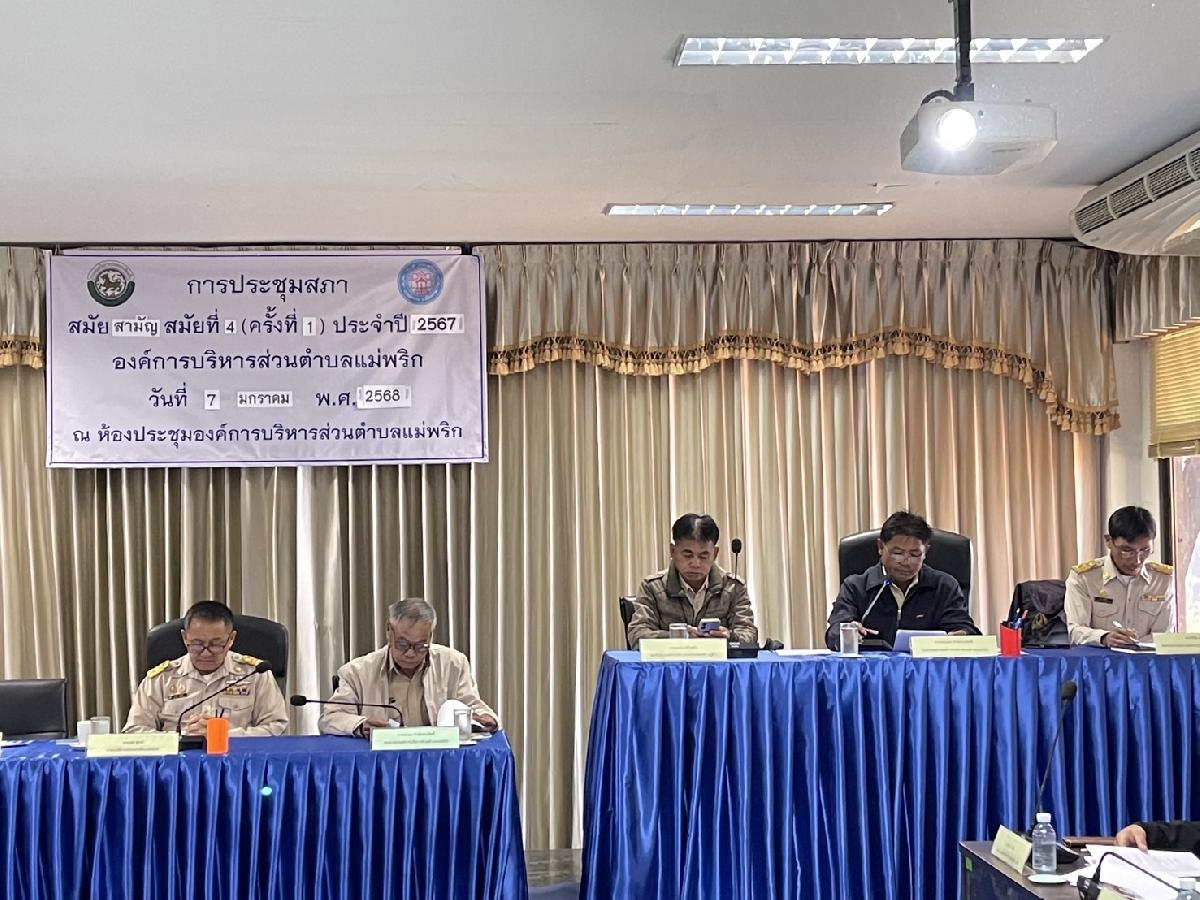 วันที่ 07 มกราคม 2568 เวลา 09.30 น. นำโดย ประธานสภา องค์การบริหารส่วนตำบลพริก รองประธานสภา สมาชิกสภา ร่วมด้วยนายกองค์การบริหารส่วนตำบลแม่พริก รองนายก เลขานุการ รองปลัด หัวหน้าส่วนราชการ รวมถึงเจ้าหน้าที่ ได้จัดการประชุมสภาสมัยสามัญ สมัยที่ 4 ครั้งที่ 2 ประจำปี 2567 เรื่อง การพิจารณาใช้จ่ายเงินสะสม เรื่อง การพิจารณาแก้ไขเปลี่ยนงบประมาณรายจ่าย ประจำปีงบประมาณ 2568 และเรื่องการพิจารณาโอนงบประมาณรายจ่าย ประจำปีงบประมาณ 2568 ณ ห้องประชุมสภาองค์การบริหารส่วนตำบลแม่พริก