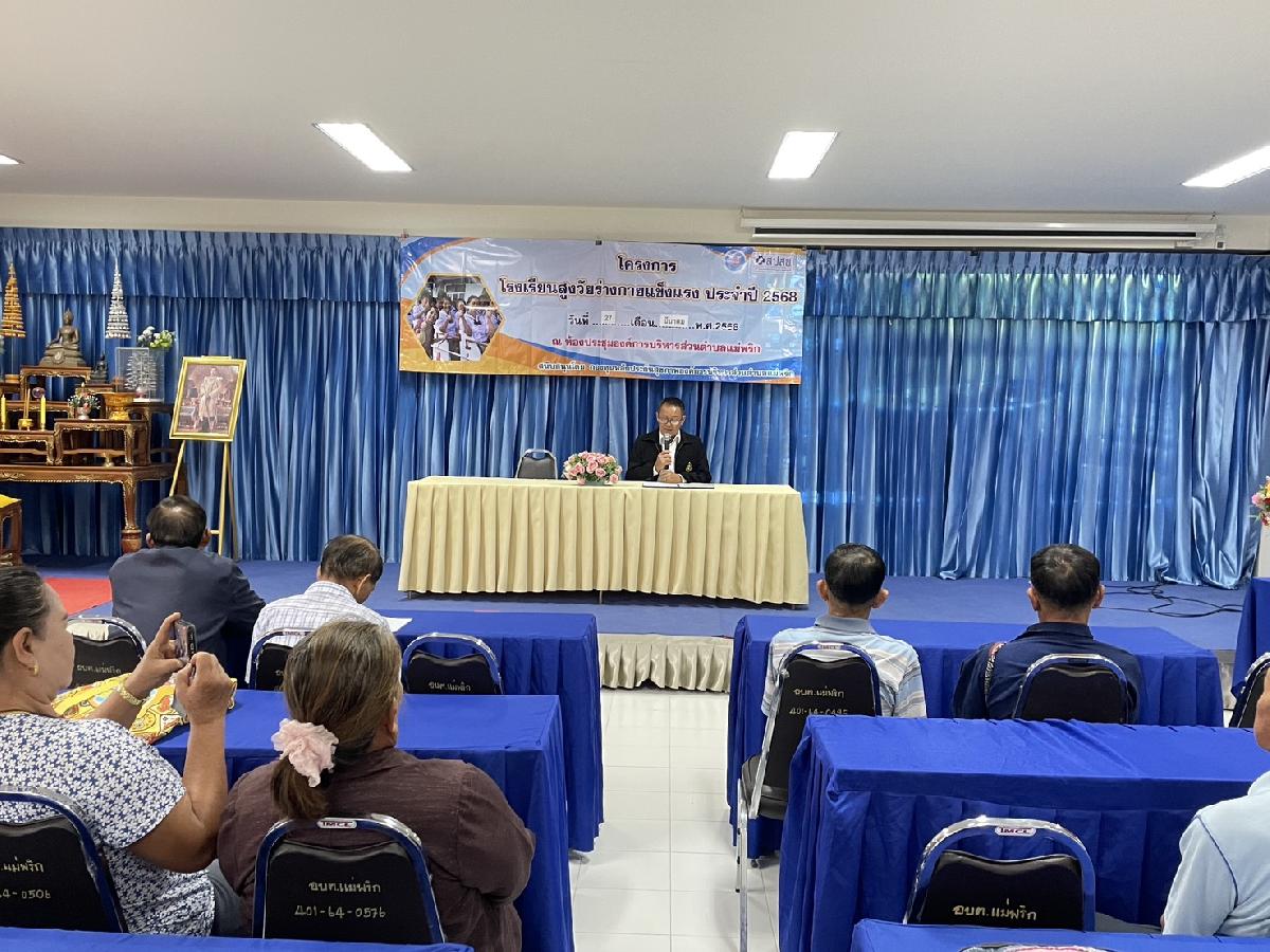 วันที่ 27 มีนาคม 2567 โรงเรียนผู้สูงอายุตำบลแม่พริก ได้ดำเนินการ เปิดการเรียนการสอน โดยดำเนิน โครงการโรงเรียนสูงวัยร่างกายแข็งแรง ประจำปี 2568 สนับสนุนงบประมาณจากกองทุนหลักประกันสุขภาพองค์การบริหารส่วนตำบลแม่พริก