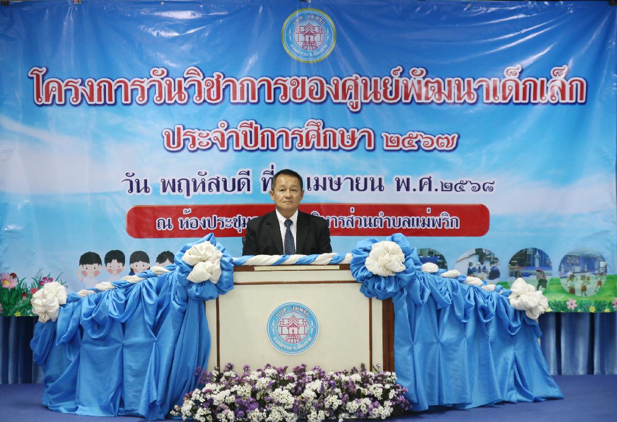 กองการศึกษา ศาสนาและวัฒนธรรม ดำเนินโครงการวันวิชาการของศูนย์พัฒนาเด็กเล็ก ประจำปีการศึกษา 2567 ซึ่งเป็นการส่งเสริมให้ผู้เรียนมีทักษะและแสดงออกตามศักยภาพตนเอง และร่วมการแข่งขันทักษะวิชาการทั้งด้าน ร่างกาย สังคม อารมณ์ และด้านสติปัญญา อีกทั้งเป็นการแสดงผลงานของเด็กในสังกัดองค์การบริหารส่วนตำบลแม่พริก และของครูผู้ดูแลเด็กทั้ง 3 ศูนย์ พร้อมทั้งเป็นการเปิดโอกาสให้กับผู้ปกครองและชุมชนได้มีส่วนร่วมในการจัดกิจกรรมในครั้งนี้ ณ ห้องประชุมองค์การบริหารส่วนตำบลแม่พริก