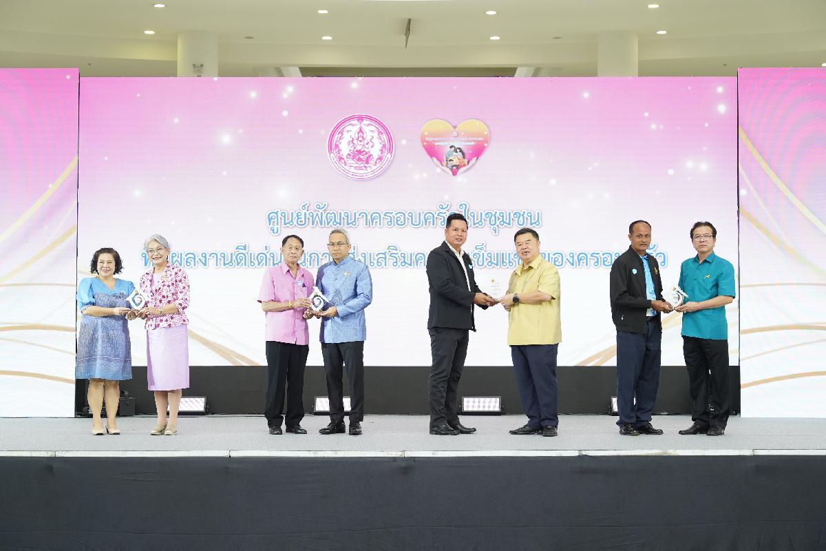 และรับมอบโล่ประกาศเกียรติคุณ ศูนย์พัฒนาครอบครัวในชุมชน ที่มีผลงานดีเด่นในการส่งเสริมความเข้มแข็งของครอบครัว จาก นายธเนศพล ธนบุณยวัฒน์ ผู้ช่วยรัฐมนตรีประจำกระทรวงการพัฒนาสังคมและความมั่นคงของมนุษย์