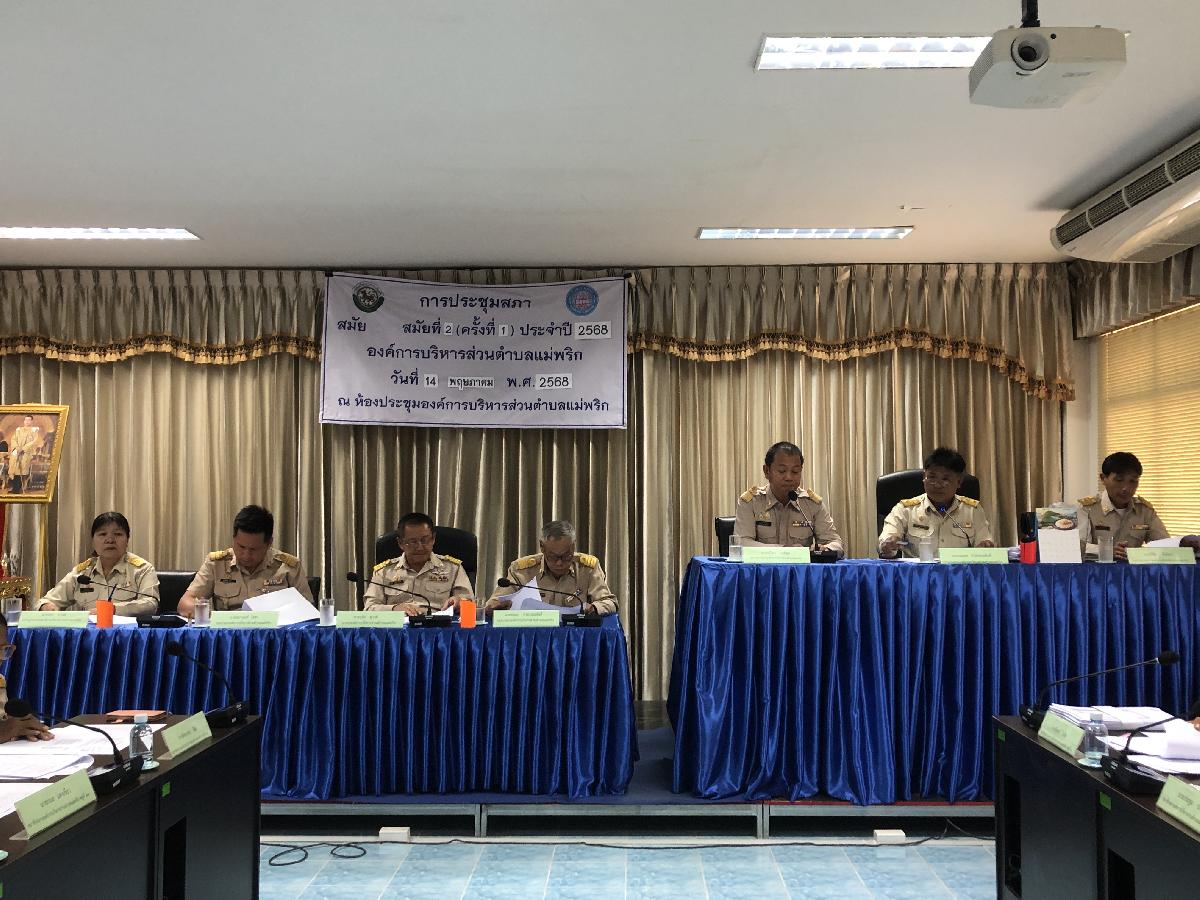 วันที่ 14 พฤษภาคม 2568 เวลา 09.30 น. นำโดย ประธานสภา องค์การบริหารส่วนตำบลพริก รองประธานสภา สมาชิกสภา เลขานุการ ร่วมด้วยนายกองค์การบริหารส่วนตำบลแม่พริก รองนายก เลขานุการ ปลัดอบต.แม่พริก หัวหน้าส่วนราชการ รวมถึงเจ้าหน้าที่ ได้จัดการประชุมสภาสมัยสามัญ สมัยที่ 2 ประจำปี 2568 เรื่อง การพิจารณาอนุมัติจ่ายเงินสะสม การพิจารณาอนุมัติงบประมาณไปตั้งจ่ายรายการใหม่ในงบลงทุน การพิจารณาให้ความเห็นชอบการขอใช้พื้นที่ของราชการภายในเขตป่าสงวนแห่งชาติ ห้องประชุมสภาองค์การบริหารส่วนตำบลแม่พริก