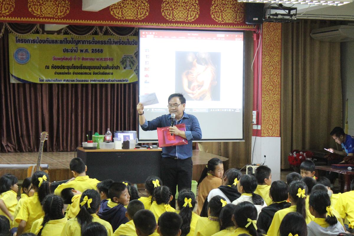 วันที่ 7 สิงหาคม 2568 กองการศึกษา ศาสนา และวัฒนธรรม องค์การบริหารส่วนตำบลแม่พริก ได้จัดทำโครงการป้องกันและแก้ไขปัญหาการตั้งครรภ์ไม่พร้อมในวัยเรียน ประจำปี พ.ศ. 2568 และได้รับเกียรติจาก นายอุทัย ฟูวงศ์ นายกองค์การบริหารส่วนตำบลแม่พริก เป็นประธานในพิธีเปิดโครงการฯ เพื่อสร้างความตระหนักและองค์ความรู้เรื่องบทบาทและคุณค่าของความเป็นชาย/หญิงในสังคมพัฒนาการทางเพศ การจัดการอารมณ์ สัมพันธภาพทางเพศ พฤติกรรมเสี่ยงทางเพศของวัยรุ่น การเสริมสร้างสุขภาพวัยรุ่น และเพื่อเสริมสร้างความภาคภูมิใจในตนเองของวัยรุ่น และมีทักษะในการปฏิเสธต่อพฤติกรรมที่เสี่ยง ต่อการดำรงชีวิต ณ ห้องประชุม โรงเรียนชุมชนบ้านสันจำปา