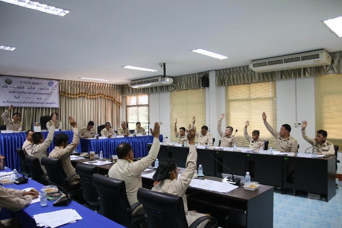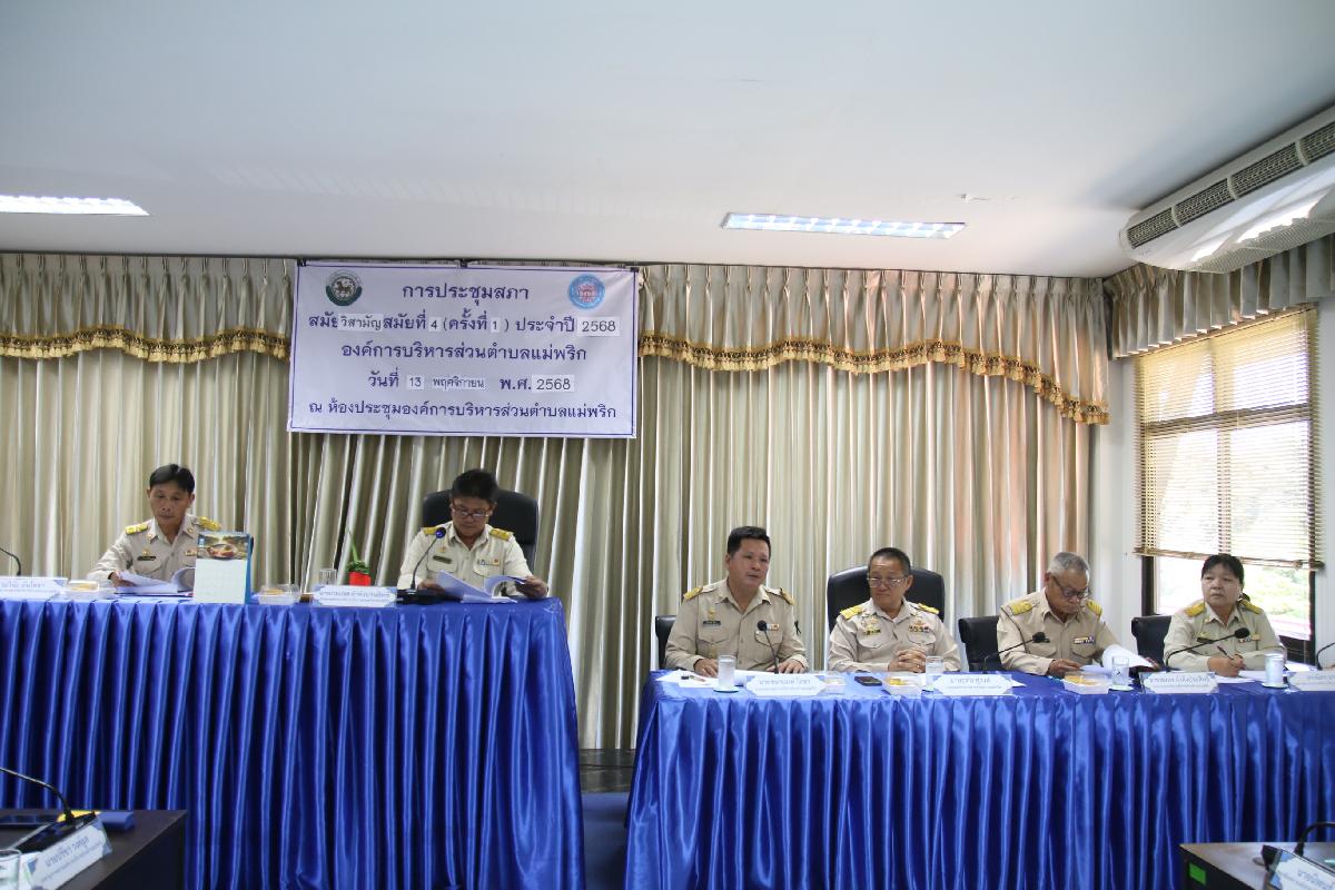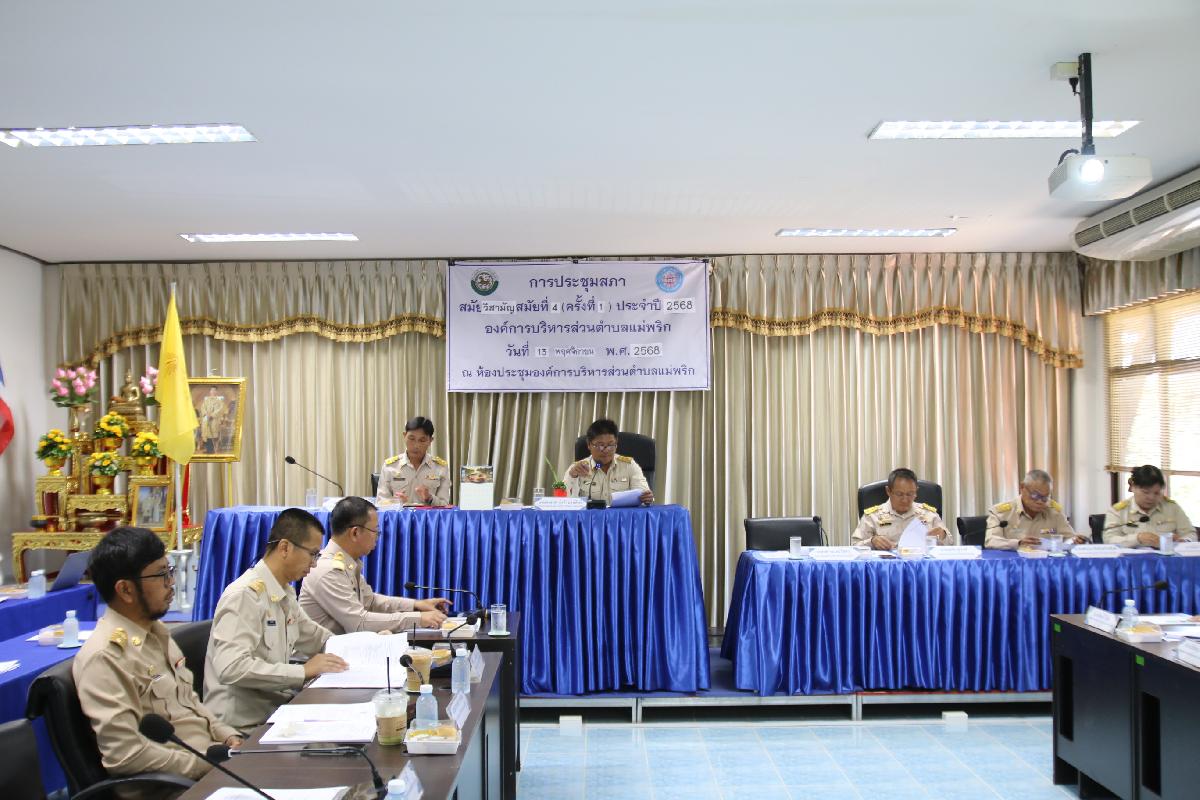 วันที่ 13 พฤศจิกายน 2568 เวลา 09.30 น. นำโดย ประธานสภา องค์การบริหารส่วนตำบลพริก รองประธานสภา สมาชิกสภา เลขานุการ ร่วมด้วย นายกองค์การบริหารส่วนตำบลแม่พริก รองนายกองค์การบริหารส่วนตำบลแม่พริก เลขานุการสภาอบต.แม่พริก หัวหน้าส่วนราชการ รวมถึงเจ้าหน้าที่ ได้จัดการประชุมสภาสมัยวิสามัญ สมัยที่ 4 ครั้งที่ 1 ประจำปี 2568 เรื่อง รายงานผลการติดตามและประเมินผลแผนพัฒนาท้องถิ่น และ รายงานแสดงผลการปฏิบัติงานตามนโยบายที่ได้แถลงไว้ต่อสภาอบต.แม่พริก ณ ห้องประชุมสภาองค์การบริหารส่วนตำบลแม่พริก