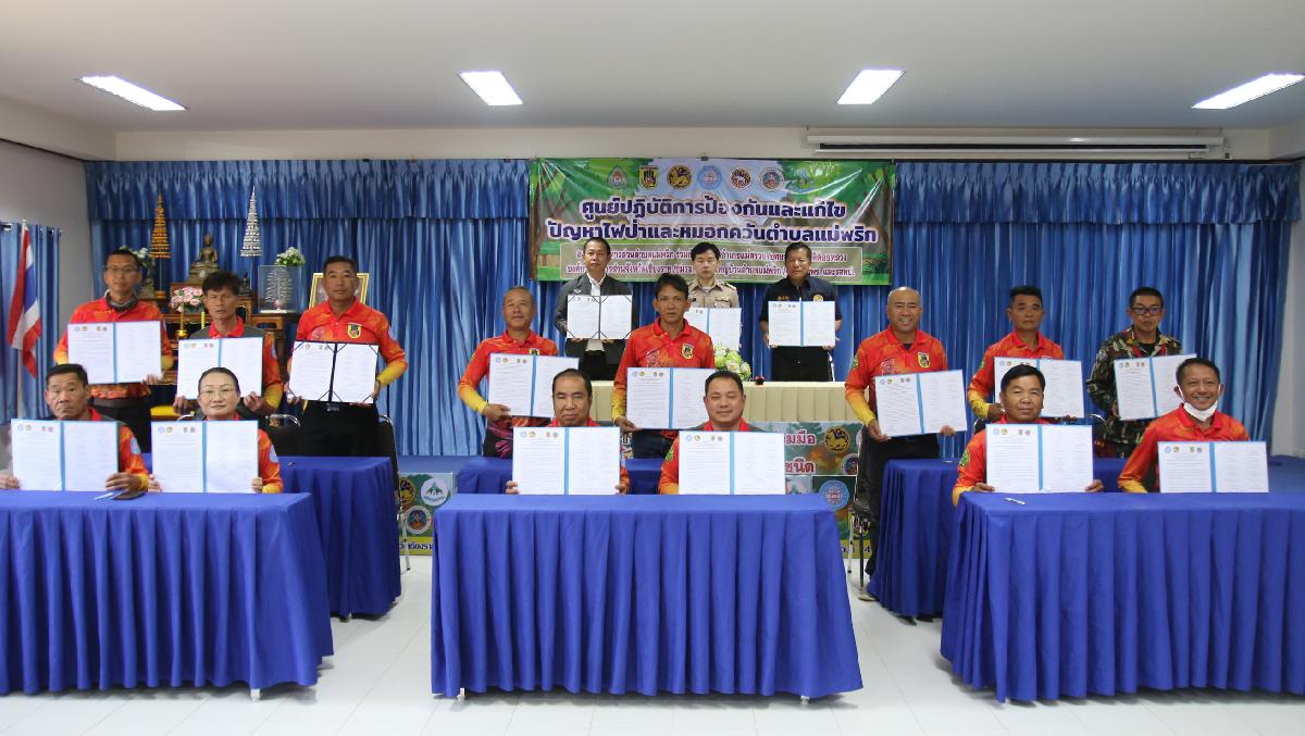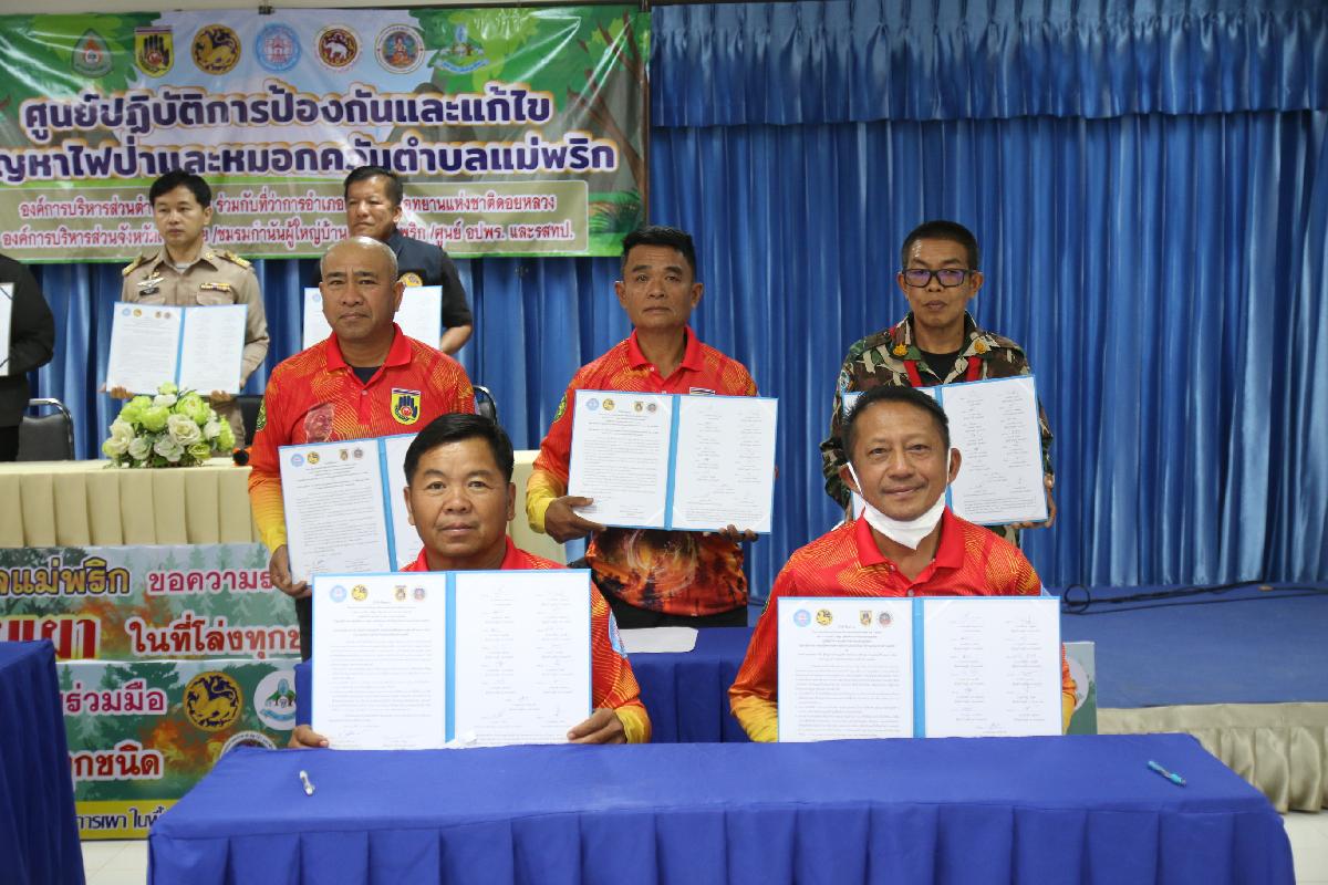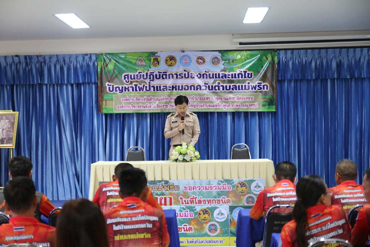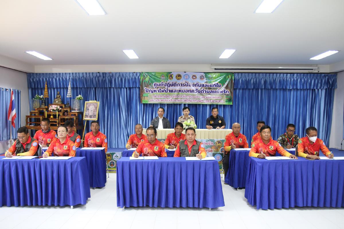 วันที่ 16 กุมภาพันธ์ 2569 นายปฤษฎางค์ สามัคคีนิชย์ นายอำเภอแม่สรวย มอบหมายให้ นายปัณณทัต อิ่นคำ ปลัดอำเภอ (จพง.ปค.ชำนาญการ) เป็นประธานในพิธีลงนามบันทึกข้อตกลง (MOU) ด้านการป้องกันและแก้ไขปัญหาไฟป่าและหมอกควันระดับตำบล ปี 2569 ณ ห้องประชุมองค์การบริหารส่วนตำบลแม่พริก โดยนายปรีชา วงค์มูล ปลัดองค์การบริหารส่วนตำบลแม่พริก ปฏิบัติหน้าที่ นายกองค์การบริหารส่วนตำบลแม่พริก ในฐานะผู้อำนวยการศูนย์บัญชาการเหตุการณ์ป้องกันและแก้ไขปัญหาไฟป่าและหมอกควันตำบลแม่พริก กับ นายอำเภอแม่สรวย กำนัน ผู้ใหญ่บ้านตำบลแม่พริก หัวหน้าหน่วยพิทักษ์อุทยานแห่งชาติที่ ดล.5 ปางอ้อย ประธานศูนย์อาสาสมัครป้องกันภัยฝ่ายพลเรือนตำบลแม่พริก เพื่อให้การดำเนินการป้องกันและแก้ไขปัญหาไฟป่าและ หมอกควันในพื้นที่เป็นไปในทิศทางเดียวกัน เกิดความคุ้มค่าและบังเกิดประโยชน์สูงสุด จึงตกลงความร่วมมือ ดังนี้