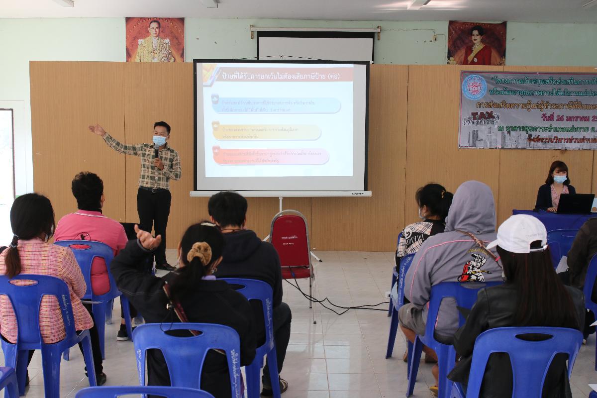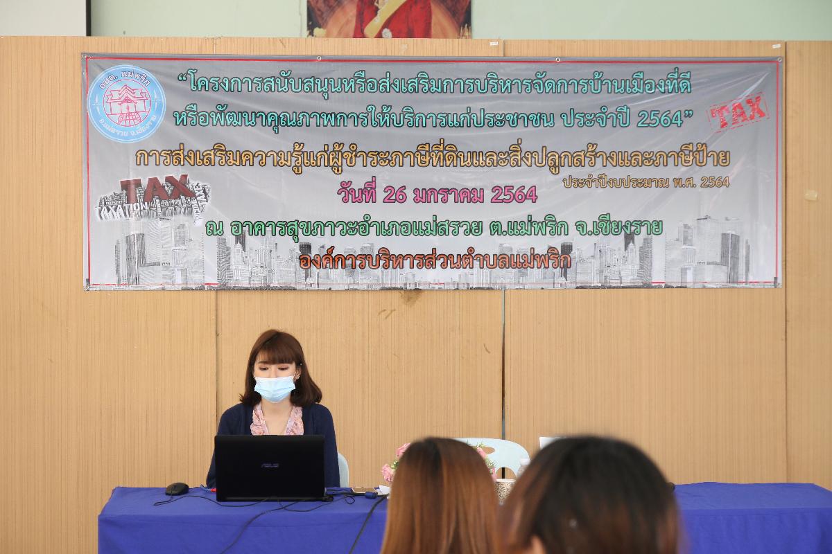 โครงการสนับสนุนหรือส่งเสริมการบริหารจัดการบ้านเมืองที่ดีหรือพัฒนาคุณภาพการให้บริการแก่ประชาชน การส่งเสริมความรู้แก่ผู้ชำระภาษีที่ดินและสิ่งปลูกสร้างและภาษีป้าย ประจำปีงบประมาณ 2564 เพื่อให้ผู้เสียภาษีรับทราบการชำระภาษีที่ดินและสิ่งปลูกสร้างต่อไป