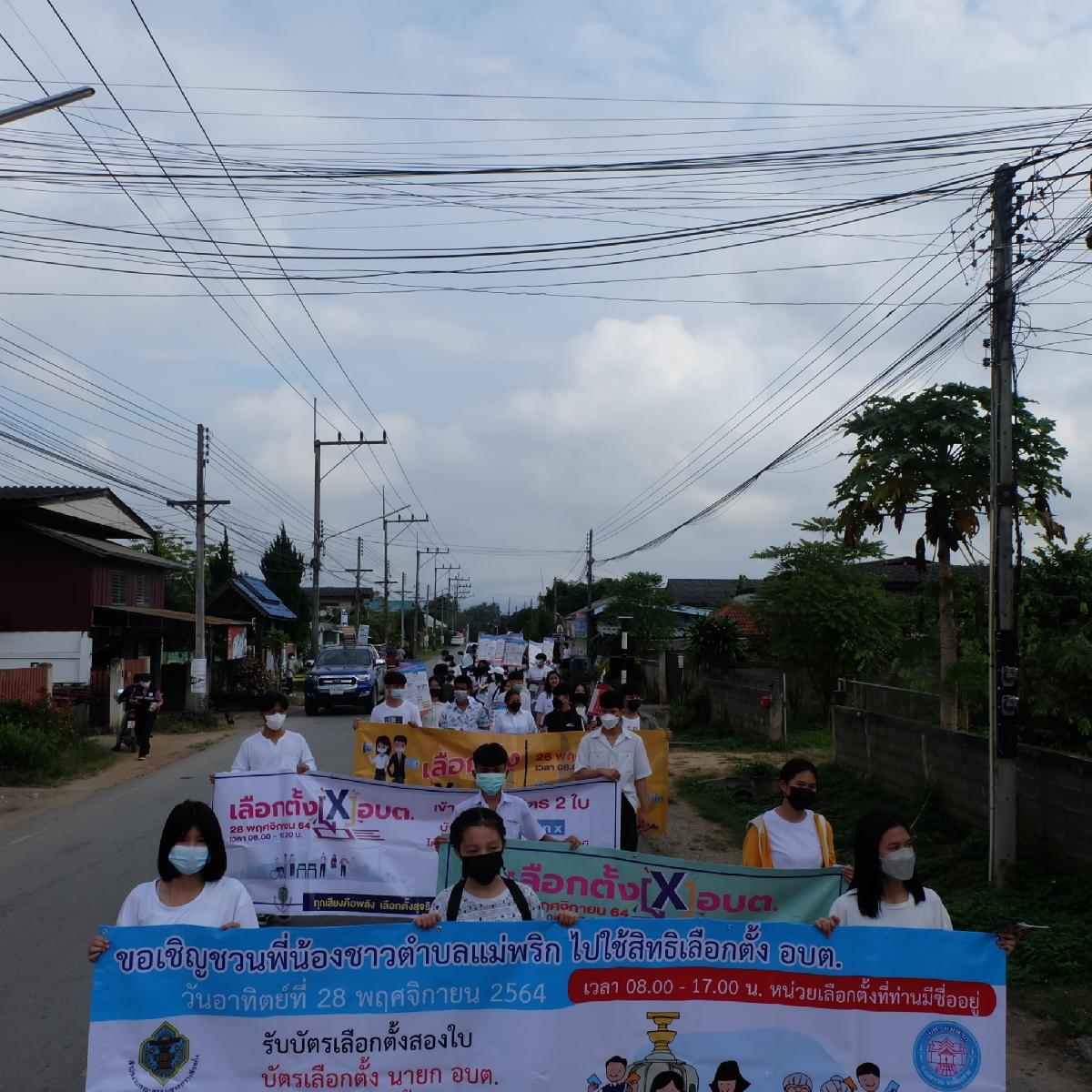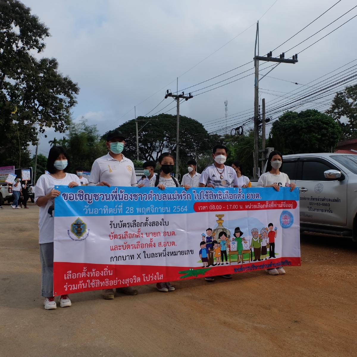 นายศักดิ์ชัย เป็งคำ ปลัดองค์การบริหารส่วนตำบลแม่พริก และในฐานะผู้อำนวยการ การเลือกตั้งประจำองค์การบริหารส่วนตำบลแม่พริก จัดกิจกรรมเดินรณรงค์เชิญชวนประชาชนไปใช้สิทธิเลือกตั้งสมาชิกสภาองค์การบริหารส่วนตำบล และนายกองค์การบริหารส่วนตำบล โดยมีเจ้าหน้าที่ และพนักงาน อบต.พริก และนักเรียนในพื่นที่ เดินรณรงค์เชิญชวนประชาชนไปใช้สิทธิเลือกตั้งมีการถือป้าย และแจกแผ่นพับให้ความรู้ให้กับประชาชน 13 หมู่บ้านในพื้นที่เขตตำบลแม่พริก เพื่อเชิญชวนประชาชนออกมาใช้สิทธิ์เลือกตั้งให้สุจริตและโปร่งใส